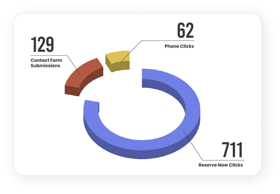 Reserve Now button clicks generated 711 conversions, showing strong intent from visitors ready to book