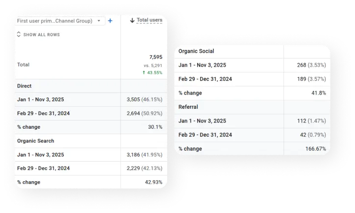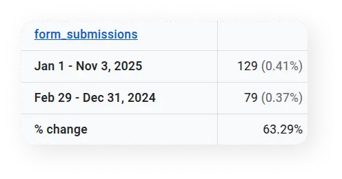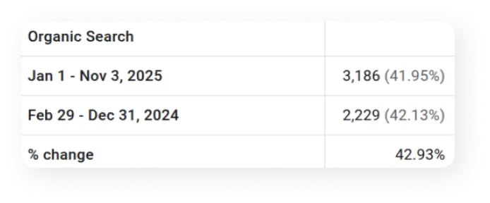 The companies SEO efforts have delivered tangible results, turning online visibility into meaningful growth. Organic traffic has increased significantly this year, with a rise of approximately 42.93% compared to the previous period, reflecting more potential clients discovering the brand and engaging with its services.