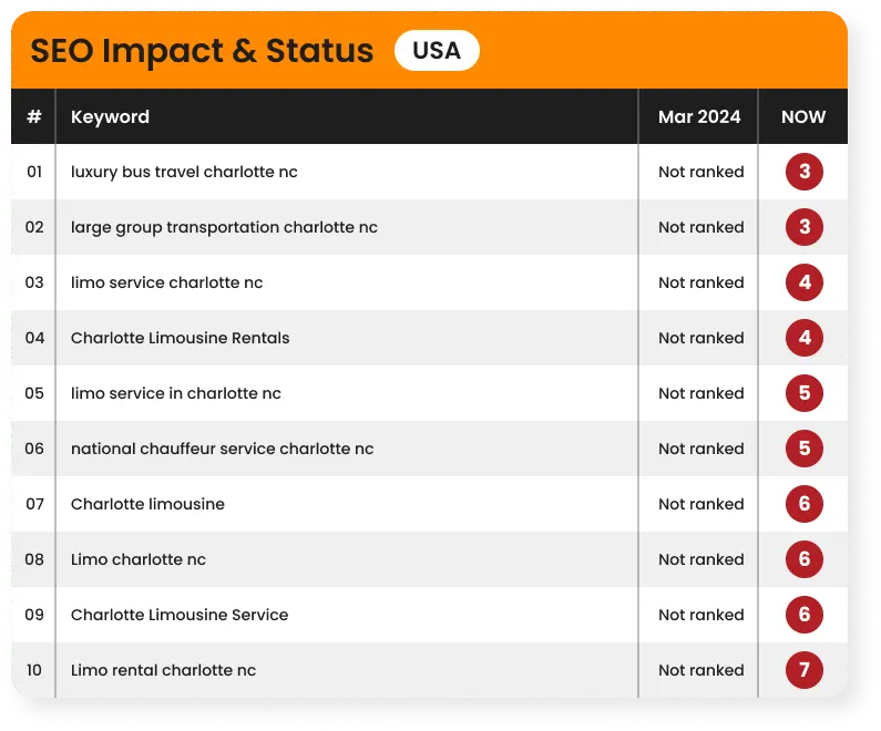The company approached us with the ambition to elevate its digital presence and ensure that the quality of its online visibility matched the excellence of its on-road service. They wanted to reach more customers in Charlotte and surrounding areas, especially those actively searching for dependable, luxury transportation. Their brand was strong. However, they just needed the right visibility to support it.